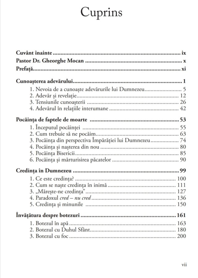 Această carte prezintă într-un mod sistematic adevărurile de baza enumerate în Evrei 6:1-2, adevăruri care reprezintă rădăcinile vitale ale vieţii noastre duhovniceşti. Fără aceste fundamente, viaţa noastră spirituală nu va putea rezista. Orice cunoaştere spirituală pornește de la adevăr, adevăr care ne-a fost revelat şi care, prin Duhul, devine o forţă care poate dărâma orice întăritură care se ridică împotriva cunoaşterii lui Hristos. Omul care are parte de revelaţia adevărului, se va pocăi de păcatele lui şi va crede din toată inima în Isus Hristos, devenind astfel o făptură nouă. În urma acestei metamorfoze, omul va fi botezat în apă, dar şi cu Duhul Sfânt, ca să Îl poată sluji pe Dumnezeu şi să devină un ucenic al Său. Aceasta slujire va aduce mai aproape de oameni Împărăţia lui Dumnezeu, care este aici şi acum, şi ne va transforma în agenţi activi ai Împărăţiei cerurilor. Însă aceasta Împărăţie, care a venit să cucerească lumea, nu se poate manifesta decât prin viaţa celor ce sunt zidiţi şi ancoraţi în Isus Hristos. Aşadar, fiind zidiţi în Hristos, noi mergem cu încredere spre veşnicie, aşteptând învierea morţilor şi viaţa veacului ce va să vină.
